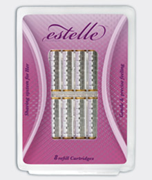 Estelle je náš holicí strojek s trojbřitými hlavicemi. Náš strojek má moderní design a vyrábí se v módní metalické barvě. Stanete-li se zákaznicí Estelle, máte možnost získat náš zaváděcí balíček za pouhých 0 Kč + poplatek za poštovné a balné. Zaváděcí balíček obsahuje náš moderní dámský holicí systém a 2 kusy trojbřitých hlavic.